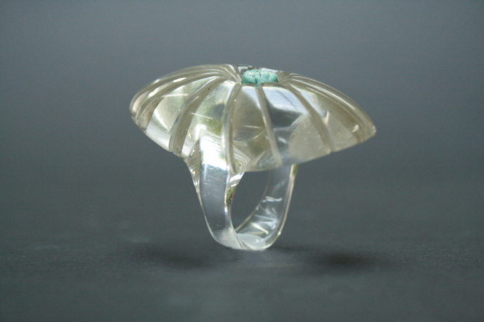 "L'ombelico tra noi" Anello realizzato in metacrilato e pietra dura Turchese. Prodotto: Studio Ferdi Giardini