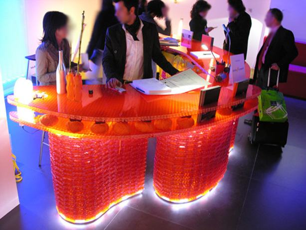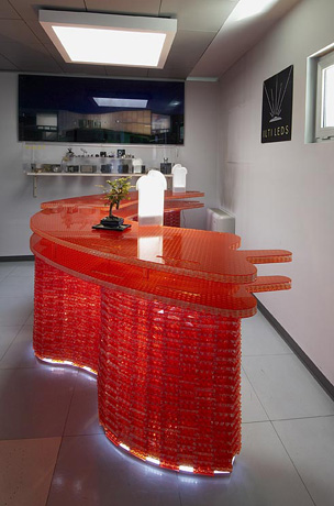 Consolle in materiale Bencore con illuminazione a led. Misure: 217 cm. x 98 cm. x 103 cm. prodotto da Ilti Luce. 2007
